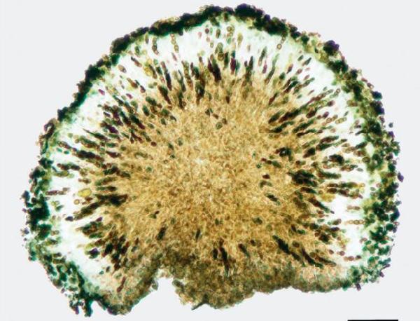 Italy Abrothallus teloschistis, holotypus, on the thallus of Seirophora villosa, section through an ascoma. Scale bar