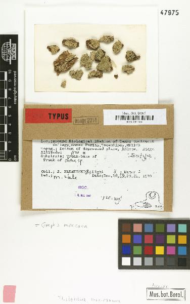 Thelotrema mexicanum - Berlin-Dahlem Botanical Garden and Botanical Museum, Germany - CC BY-SA.