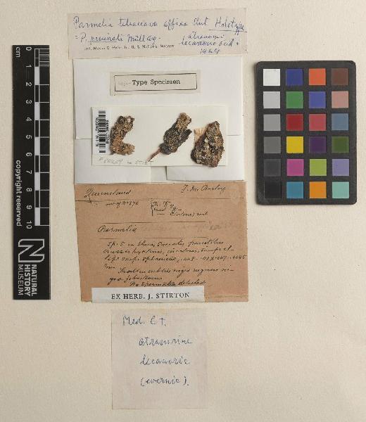 As Canoparmelia pruinata (Müll.Arg.) Elix & J.Johnst. - The Trustees of the Natural History Museum, London, United Kingdom - CC BY.