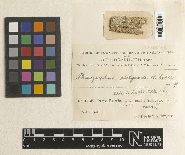 As Phaeographina platypoda Zahlbr. - 1901 - The Trustees of the Natural History Museum, London, United Kingdom - CC BY.