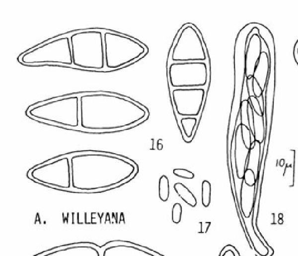 Aptroot, 2017. - Spores 1(-3)-septate, 12-23 x 3-5 μm.