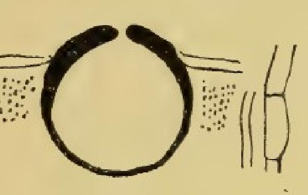 Description: Thallus squamulose to subcrustose, beige to pale brown, epruinose, thin, sometimes delimited by a pale prothallus. Squamules 0.4-1 mm broad, rounded to crenate, flattened to slightly convex, smooth, contiguous, mostly forming a subcrustose thallus. Lower surface attached by c. 4 µm thick, pale rhizohyphae. Upper cortex paraplectenchymatous, of small isodiametrical cells, rather thin, poorly differentiated from the algal layer; lower cortex absent. Perithecia black, 0.3-0.35 mm wide, developing from the hypothallus and located among the squamules, at first globose, then pyriform, projecting, with an involucrellum extending all around the perithecium. Exciple dark throughout; hamathecium of periphyses, interascal filaments absent. Asci 8-spored, narrowly clavate, with biseriately arranged spores, the wall I-, 70-80 x 17-20 µm. Ascospores 1-celled, hyaline, narrowly ellipsoid, thin-walled, 15-20(-22) x 6-8 µm. Pycnidia unknown. Photobiont chlorococcoid. Spot tests: cortex and medulla K-, C-, KC-, P-, UV-. Chemistry: without lichen substances.Note: only known from the type collection, this terricolous species deserves further study. Indicator values are tentative.