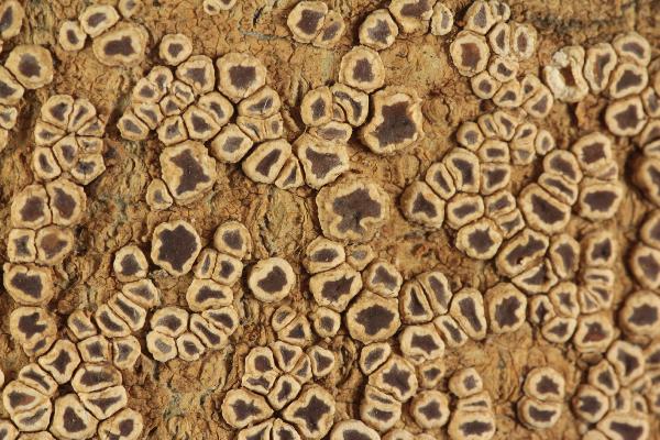 Description: Thallus crustose, endosubstratic or thinly episubstratic, continuous to rimose, grey or yellowish grey, epruinose, without a distinct prothallus. Apothecia lecanorine, 0.2-1.2 mm across, with a flat, orange-brown or yellowish brown, strongly to weakly pruinose disc and a thin, finally usually excluded thalline margin. Thalline exciple ecorticate, with many small crystals soluble in K; epithecium grey-brown, with many small crystals soluble in K; hymenium colourless, 60-75 µm high; paraphyses simple to sparingly branched in upper part, 1.5–2 µm thick at mid-level, the apical cells up to 4 µm wide; hypothecium colourless. Asci (8-)12-spored, clavate, very thin-walled, with a K/I+ blue, tall tholus penetrated by a faintly amyloid apical cushion, the wall K/I-, surrounded by a blue outer layer, Lecanora-type. Ascospores 1-celled, hyaline, ellipsoid, 10-13 x 5-7.5 µm. Photobiont chlorococcoid. Spot tests: thallus and apothecial margin K+ yellow, C-, KC-, P+ yellow (apothecial margin only). Chemistry: thallus and apothecial margin with atranorin, chloratranorin and zeorin; apothecial margin with additional psoromic and 2'-0-demethylpsoromic acids.Note: this is a member of the L. albella-group, which includes species with a pruinose disc and an ecorticate apothecial margin. It is distinguished by the polysporous asci and the P+ yellow apothecial margin (psoromic acid), and has a mainly northern distribution in Europe, growing on bark in rather shaded and humid situations. The Italian distribution follows Jatta (1909-1911) who provides a description fitting the essential characters of the species, but the presence of this species in Italy requires re-confirmation.