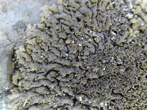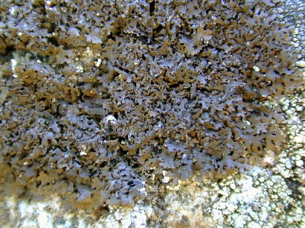 Description: Thallus foliose, heteromerous, dorsiventral, adnate to loosely adnate, usually more or less panniform and sometimes pulvinate, up to 7(-10) cm in diam., the individual thalli sometimes coalescing into larger patches. Primary lobes discrete to imbricate, (0.3-)0.5-1(-1.5) mm wide, mostly flat, the central parts of thallus with crowded, imbricate, spherical to clavate, simple or slightly branched, small (< 1 mm wide) lobules resembling isidia. Upper surface olive-brown to dark brown, smooth to weakly pitted and sometimes slightly pruinose at the periphery, without pseudocyphellae on the primary lobes, sometimes with obscure pseudocyphellae near the ends of lobules. Lower surface brown to black, paler at the periphery; smooth to irregularly wrinkled, with dark, mostly simple rhizines. Upper cortex paraplectenchymatous, with a non-pored epicortex, the cell walls containing isolichenan; medulla white; lower cortex paraplectenchymatous. Apothecia rare, lecanorine, up to 3 mm across, sessile, with a concave to flat disc and a papillate to lobulate thalline margin. Epithecium brown; hymenium and hypothecium colourless. Asci 8-spored, clavate, Lecanora-type. Ascospores 1-celled, hyaline, ellipsoid, 9-12 x 4.5-7 µm. Pycnidia common, black, immersed. Conidia thickened at both ends, 4-7 x c. 1 µm. Photobiont chlorococcoid. Spot tests: upper cortex K-, C-, KC-, P-, N-; medulla K-, C-, KC- or rarely KC+ faintly pink, P-, UV+ white. Chemistry: medulla with perlatolic and stenosporic acids (major).