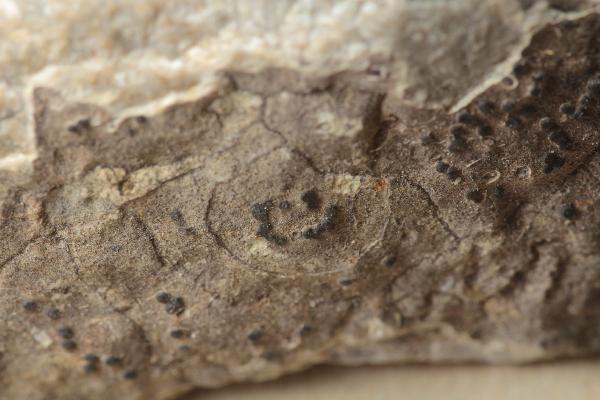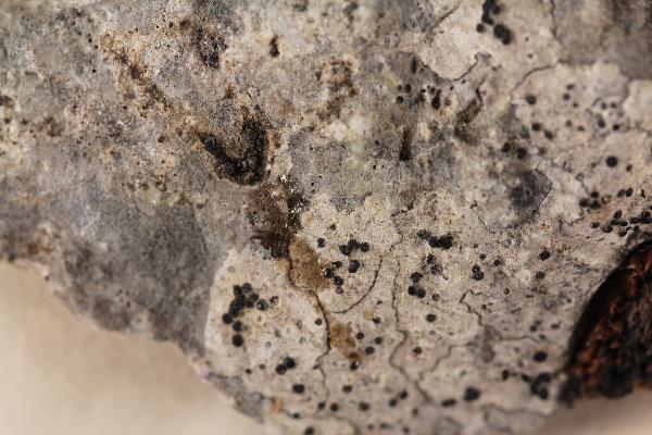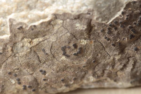 Description: Thallus crustose, endosubstratic, whitish to brownish grey, often with numerous, very small, brownish dots, smooth, often delimited from conspecific thalli by a crack, a black line, or a row of brown pycnidia. Pseudocortex formed by a thin prosoplectenchyma intermingled with microcrystals, sometimes with an upper layer of slightly pigmented cortical cells; medulla prosoplectenchymatous, white, K/I+ violet, without macrospheroids. Perithecia black, 0.35-0.5(-0.6) mm across, not covered by thallus at base, the apex clearly projecting, flat or usually concave, the base leaving shallow pits in rock. Involucrellum well-developed, (80-)110-150(-200) μm thick in lower part, dimidiate or extending almost to the base of exciple, the pigment dark reddish brown, K+ dark brown; exciple subglobose, the wall brown in upper part, pale in lower part; hamathecium of periphyses and 20-30 μm long periphysoids, interascal filaments absent; hymenial gel hemiamyloid, I+ red (I+ blue at very low concentrations of I), K/I+ blue. Asci 8-spored, clavate, I-, fissitunicate, the wall thickened above, with an ocular chamber, dehiscent by extrusion of an endotunica to form a delicate rostrum, Verrucaria-type. Ascospores 1-celled (a few overmature spores sometimes 1-septate), hyaline, oblong to ellipsoid, (15.5-)18-23(-25) x (6-)8-9(-10) μm, often with an up to 1.5 μm thick perispore. Pycnidia frequent and often numerous, 0.06-0.1 mm wide, appearing as black to brown dots, scattered or often arranged in lines at the thallus edge. Conidia bacilliform, 3.3-4.5 x 0.8-1.2 μm. Photobiont chlorococcoid. Spot tests: K-, C-, KC-, P-, UV-. Chemistry: without lichen substances.Note: on steeply inclined surfaces of hard calcareous rocks, mainly limestone, in rather shaded situations, with a wide altitudinal range, reaching the eu-Mediterranean belt in particularly humid and shaded stands.