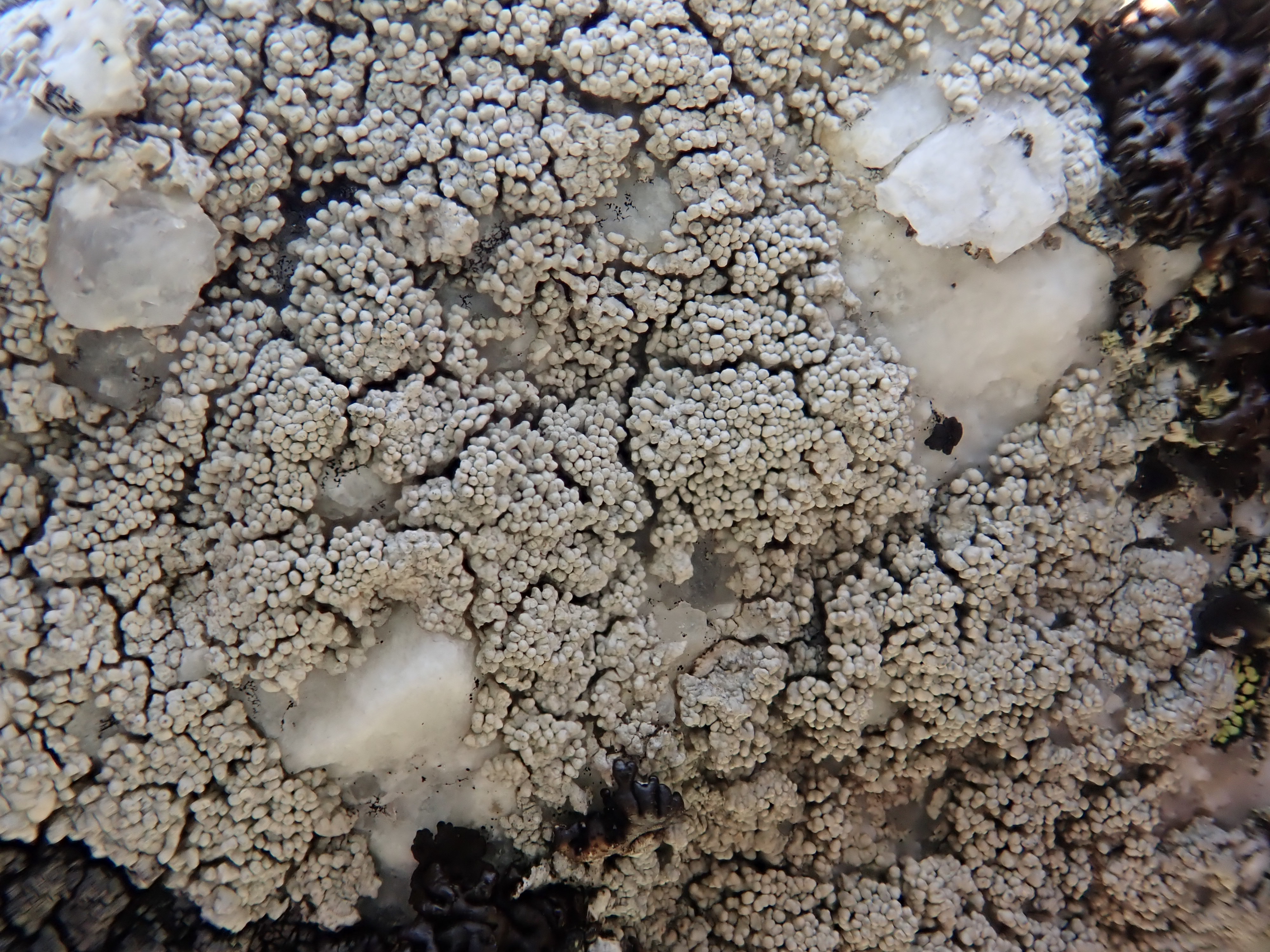 Synonyms: Marfloraea corallina (L.) S. Y. Kondr., L. Lőkös & J.-S. Hur; Pertusaria corallina (L.) Arnold; Pertusaria corallina var. verruculosa Erichsen; Pertusaria dealbata f. corallina (L.) Cromb.; Pertusaria harmandii M. Choisy; Pertusaria subdubia Nyl.; Pertusaria syncarpa var. corallina Mudd; Variolaria corallina (L.) Ach.