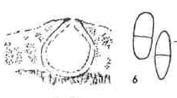 Description: Thallus squamulose, the squamules rounded to lobulate, 1-3 mm wide, 0.15-0.35 mm thick, flattened to weakly convex, smooth, scattered to contiguous, sometimes weakly overlapping at margins, adpressed to the substratum, greenish grey to brownish grey, sometimes pruinose, matt; lower surface pale, attached by 3-4 μm thick, colourless rhizohyphae. Upper cortex 15-25 μm thick, pseudoparenchymatous, with a 10-30 μm thick epinecral layer; medulla poorly developed, of mostly globose cells; lower cortex absent or poorly developed and consisting of 1-3 layers of isodiametrical cells. Perithecia frequent, laminal, immersed in the squamules, slightly pyriform to globose, up to 0.3 mm across, without involucrellum. Exciple initially colourless, then brownish, darker only around the ostiole, of tangentially arranged, elongate cells; periphyses present around the ostiole, 20-30 x 2.5-3 μm, the terminal cells somewhat enlarged, interascal filaments absent; hymenial gel hemiamyloid. Asci 8-spored, narrowly clavate, thin-walled, apically slightly thickened, with a small ocular chamber, K/I-, 55-65 x 11-16 μm. Ascospores 1-septate, often slightly constricted at septum, hyaline, broadly ellipsoid to subclavate, thin-walled, (12-)15-19(-21) x 5-8 μm. Photobiont chlorococcoid (Diplosphaera). Spot tests: cortex and medulla K-, C-, KC-, P-, UV-. Chemistry: without lichen substances. Note: on clayey, somewhat calciferous but often superficially decalcified soil in grasslands and garrigues below the montane belt; in Italy this species seems to behave as a vicariant of the submediterranean P. custnani in the Mediterranean belt. See also note on P. tenella.