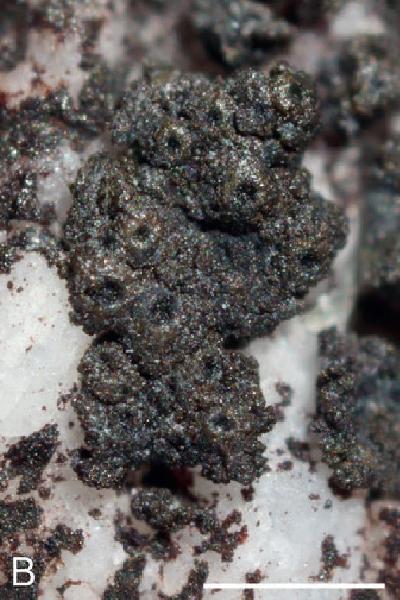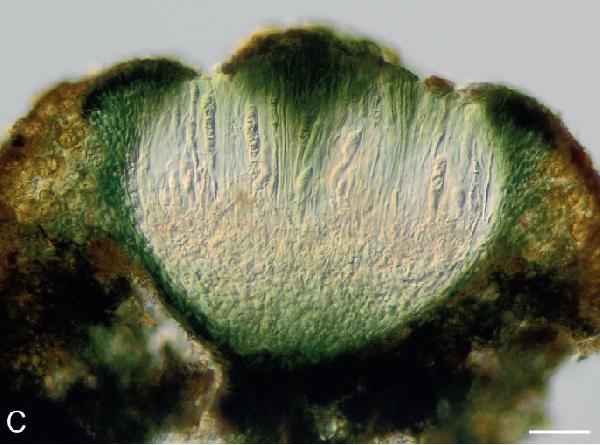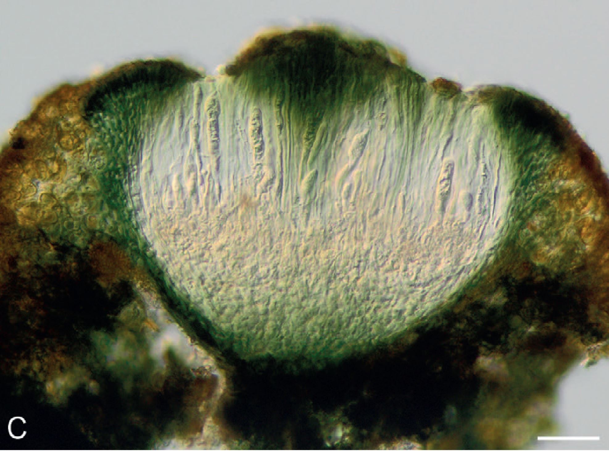 immersed, black apothecia (Schultz 16867). Scale bar: 0.5 mm