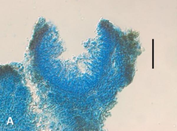 Cross sections of thalli in LCB showing differences in cortex structure: brown, multi-layered in