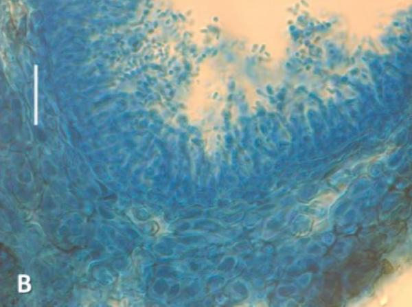 Vahliella atlantica, . Detail of pycnidium in LCB showing short, bacilliform conidia. Scale bar: 20 micron