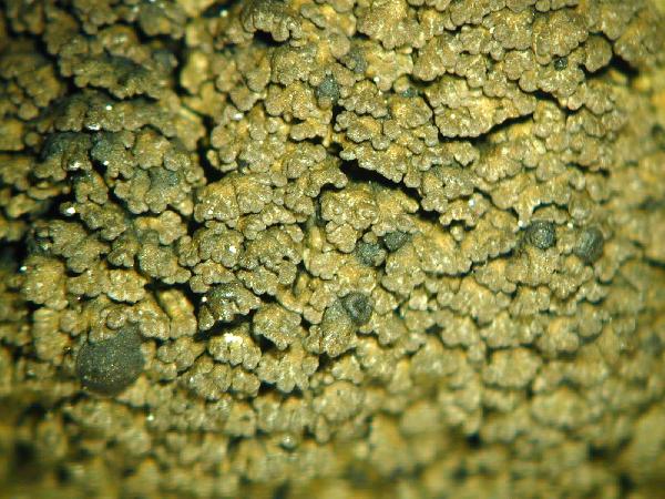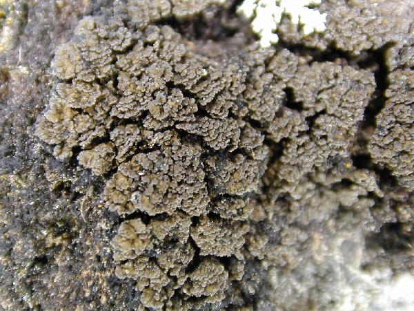 Description: Thallus crustose to subsquamulose, heteromerous, forming an up to 2 cm wide crust-like cover on a thin, blue-black hypothallus. Squamules to 1.5(-2) mm wide, remaining discrete at the margin of the crust, often imbricate in central parts, grey-brown to dark brown or almost black, indented. Upper cortex paraplectenchymatous with irregularly thickened cell walls, 15-20 µm thick; medulla white, loose, gradually merging into rhizohyphae; lower cortex absent. Apothecia common, to 1 mm across, with a brown to blackish, flat to convex disc and an often only partially developed, finally excluded thalline margin. Exciple variously developed, up to 60 µm thick, subparaplectenchymatous; epithecium brown-black; hymenium colourless, 100-120 µm high, hemiamyloid, I+ blue-green turning red-brown; paraphyses simple, the apical cells clavate; hypothecium colourless. Asci 8-spored, clavate to subcylindrical, with a thin densely amyloid layer capping the endoascus and an amyloid exoascus, but no other densely amyloid internal structures. Ascospores 1-celled, hyaline, lacking an epispore, with internal oil droplets, 13-18 x 5-6 µm. Pycnidia very rare, immersed. Conidia bacilliform. Photobiont cyanobacterial (Nostoc, the cells in clusters). Spot tests: cortex and medulla K-, C-, KC-, P-, UV-. Chemistry: without lichen substances. Note: on basic siliceous rocks in sheltered and humid situations, such as in seepage tracks; most frequent in the Alps. An earlier record from Venezia Giulia (see Nimis 1993: 468) is excluded, as it was actually from Slovenian territory.