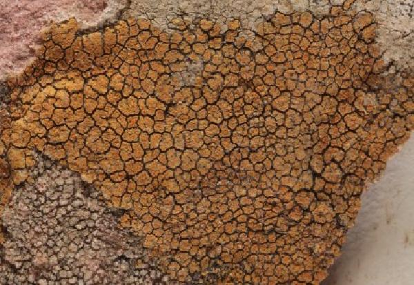 Description: Thallus crustose, episubstratic, ochraceous yellow to ochraceous orange, epruinose, smooth and subcontinuous or sometimes finely cracked, usually well-delimited, forming up to 3 cm wide patches. Apothecia frequent, 0.3-0.8(-1) mm across, persistently immersed in the thallus, with an initially flat, then sometimes convex, orange to brownish orange disc and a usually slightly paler, smooth, persistent margin. Epithecium orange, granular, K+ purple-red; hymenium colourless, 50-80 μm high; paraphyses sparingly branched in upper part, the apical cells swollen, up to 4-6 μm wide; hypothecium colourless. Asci 8-spored, clavate, functionally unitunicate, apically thickened with a broad internal beak, the inner part of apex and external cap I+ blue, Teloschistes-type. Ascospores 2-celled, polarilocular, hyaline, ellipsoid to broadly ellipsoid, 9-15 x 5-10 μm, the equatorial thickening (“septum”) 3-5 μm (1/4-1/2 of spore length). Photobiont chlorococcoid. Spot tests: thallus and apothecia K+ purple-red, C-, KC-, P-. Chemistry: thallus and apothecia with parietin (major), fallacinal, emodin, teloschistin and parietinic acid (minor), corresponding with chemosyndrome A of Søchting (1997).Note: a poorly known calcicolous species described from Dalmatia. The epithet dalmatica seems to have priority within a difficult and still not fully understood complex of related species found on a wide variety of calcareous substrata in exposed, rather eutrophicated situations. The records reported from Italy refer to the species in a very broad sense; several of them could refer to other species, such as V. dolomiticola, V. epierodens, V. placidia, V. schaereri, V. velana.
