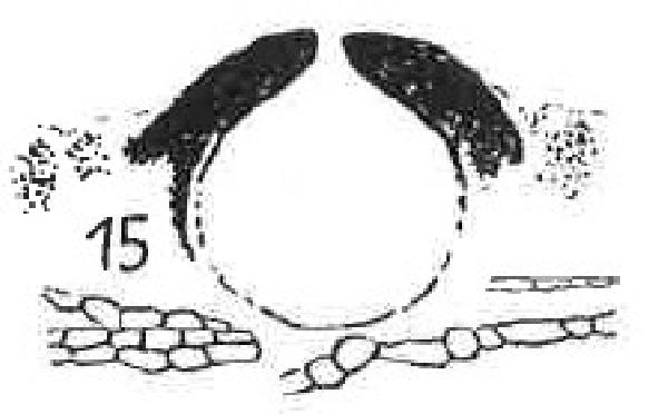 Description: Thallus crustose, thinly episubstratic, whitish to brown, areolate. Cortex usually colourless or with a dilute brown pigment. Perithecia black, forming 0.2.0.4 mm wide projections, often merging together into small clumps. Involucrellum very thick, reaching down 1/3-2/3 of the perithecium, appressed to or slightly diverging from exciple; exciple 0.2-0.4 μm across, the wall colourless to brownish at base; hamathecium of 30-40 μm long, branched periphysoids, interascal filaments absent; hymenial gel hemiamyloid, I+ red (I+ blue at very low concentrations of I), K/I+ blue. Asci 8-spored, clavate, I-, fissitunicate, the wall thickened above, with an ocular chamber, dehiscent by extrusion of an endotunica to form a delicate rostrum, Verrucaria-type. Ascospores 1-celled, hyaline, ellipsoid, 18-25 x 8-14 μm. Photobiont chlorococcoid. Spot tests: K-, C-, KC-, P-, UV-. Chemistry: without lichen substances.