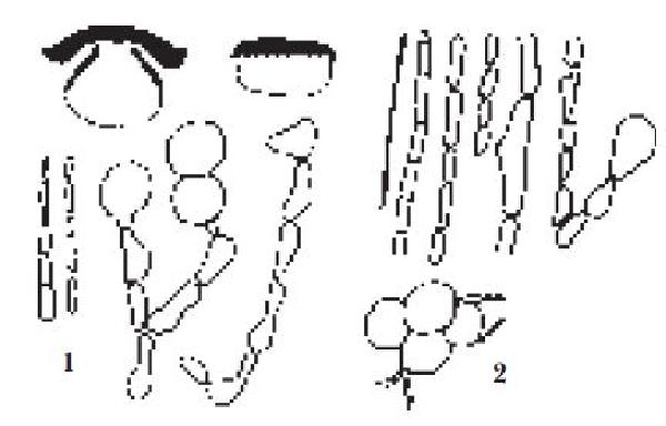 Description: Thallus crustose, fully endosubstratic, usually covering large surfaces, pale to bright purple-pink. Cortex (lithocortex) densely prosoplectenchymatous, of conglutinated hyphae intermingled with microcrystals, the upper part pink-violet, the lower part colourless; algal layer discontinuous, the photobiont cells in clusters; medulla prosoplectenchymatous, with macrosphaeroids especially near the base of the perithecia. Perithecia black, usually numerous, completely immersed in thallus and leaving deep pits in the rocks when they fall off, the apex slightly projecting to flattened. Involucrellum at least as large as the body of the perithecium, with radial cracks around the ostiole; exciple 0.1-0.2 mm across, the wall colourless to pale brown in upper part; hymenial gel hemiamyloid, I+ red (I+ blue at very low concentrations of I), K/I+ blue; hamathecium of periphyses in the ostiolar canal, and short periphysoids in the upper half of the perithecial cavity; paraphyses dissolving early. Asci 8-spored, two-layered, fissitunicate, with a thin tholus reacting I-, Verrucaria-type. Ascospores 1-celled, hyaline, ellipsoid, poorly developed (no mature ascospores ever observed). Photobiont chlorococcoid. Spot tests: thallus K+ dark blue-green, C-, KC-, P-. Chemistry: a pink pigment in thallus.