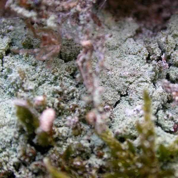 Description: Thallus leprose, episubstratic, 0.1-0.5 mm thick, pale to mid blue-grey when dry, brighter green when moist, entirely consisting of 60-120 μm wide, ecorticate granules without projecting hyphae, the inner granules whitish, without a true medulla. Apothecia and pycnidia unknown. Photobiont chlorococcoid, the cells globose, 8-15 μm wide. Spot tests: K-, C-, KC+ pale yellow, P-. Chemistry: usnic acid and zeorin. Note: on shaded to sunny, vertical or near-vertical surfaces of old mortared walls, sometimes overgrowing mosses, known from the British Isles and Southern France (Roux & al. 2025b). To be looked for in Italy.
