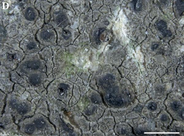 Description: Thallus crustose, thinly episubstratic, up to c. 0.2 mm thick, grey-white, finely rimose-areolate, without a distinct prothallus, the areoles angular, flat, 0.2-0.4 mm wide, minutely roughened to subfarinose. Upper cortex and epinecral layer hardly discernible; algal layer irregular, up to 200 µm thick, densely inspersed with substrate crystals, especially in lower part; medulla thin, chalky white. Perithecia black, semi-immersed, hemispherically projecting. Involucrellum extending halfway to 2/3 of the perithecium, appressed to exciple, laterally 50-70 µm thick; exciple subglobose, 0.25-0.4 mm across, the wall black throughout, 20-25 µm thick; hamathecium of 35-45 µm long, thin, sparingly branched periphysoids, interascal filaments absent; hymenial gel hemiamyloid, I+ red (I+ blue at very low concentrations of I), K/I+ blue. Asci 8-spored, clavate, I-, fissitunicate, the wall thickened above, with an ocular chamber, dehiscent by extrusion of an endotunica to form a delicate rostrum, Verrucaria-type, 70-75 x 20-25 µm. Ascospores 1-celled, hyaline, ellipsoid, 19-25 x 9-12 µm. Photobiont chlorococcoid. Spot tests: K-, C-, KC-, P-, UV-. Chemistry: without lichen substances.Note: on calcareous stones and boulders in rather humid situations; rather rare, but perhaps overlooked throughout Central Europe, with several scattered records from the Alps (Nimis & al. 2018), from the lowlands to treeline; also known from North America. For further details see Breuss (2007) and Oïhnéart & al. (2018). To be looked for in Italy.