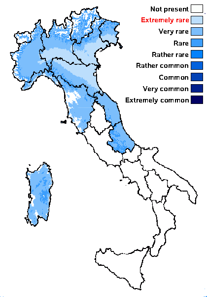 Distribution: N - VG (Castello 1996), Frl (Badin & Nimis 1996, Castello & Skert 2005, Tretiach & Molaro 2007), Ven (Nimis & al. 1996c, Caniglia & al. 1999, Lazzarin 2000, Nascimbene 2005c, 2008), TAA (Zieger & al. 2003, Obermayer 2003, Nascimbene 2005b, 2006c, 2014, Nascimbene & al. 2007b, 2014, 2022, Cristofolini & al. 2008, Zarabska & al. 2009, Brackel 2013, Nimis & al. 2015), Lomb (Rivellini 1994, Arosio & Rinaldi 1995, Valcuvia & Brusoni 1996, Brusoni & al. 1997, Zocchi & al. 1997, Roella 1999, Brusoni & Valcuvia 2000, Casarini & al. 2000, Arosio & al. 2000, 2003, Furlanetto 2010, Brackel 2013, Gheza & al. 2015, 2020, Gheza 2019), Piem (Caniglia & al. 1992, Piervittori & al. 1996b, Arosio & al. 1998, Piervittori 1998, 2003, Clerc & al. 1999, Isocrono & Falletti 1999, Griselli & al. 2000, 2003, Castino 2004, Isocrono & al. 2004, 2005b, 2007, Isocrono & Piervittori 2008, Furlanetto 2010, Matteucci & al. 2010), VA (Piervittori & Maffei 1996, 2001, Piervittori & Isocrono 1999, Valcuvia & al. 2000b, Piervittori & al. 2001, Matteucci & al. 2008, 2008c, Isocrono & al. 2008, Ongaro & al. 2022), Emil (Bassi 1995, Gasparo & Tretiach 1996, Marconi & al. 2006, Morselli & Regazzi 2006, Cioffi 2009, Fariselli & al. 2020), Lig (Giordani & Incerti 2008). C - Tosc, Marc (Frati & Brunialti 2006), Abr (Olivieri & al. 1997, 1997b, Loppi & al. 1999), Sar (Rizzi & al. 2011, Di Nuzzo & al. 2022).