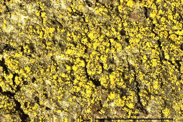 Candelariella efflorescens – granular thallus dissolved into soredia, appearing as a confluent sorediate crust