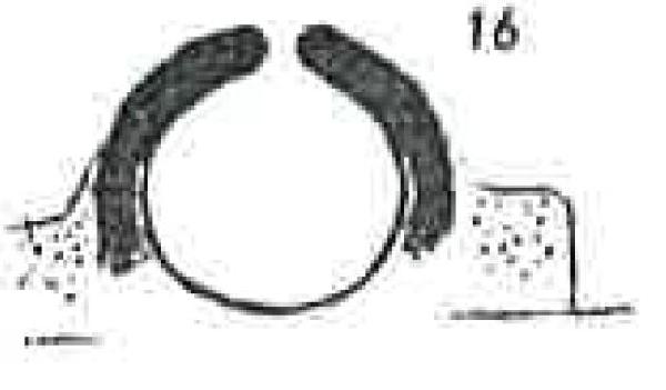 Description: Thallus crustose, episubstratic, black-brown, grey or reddish brown, thin to thick, continuous or finely rimose, paraplectenchymatous, more or less subgelatinous and with transparent margins when wet, sometimes delimited by a black line. Cortex indistinct or consisting of an algal-free layer which may be brown in sun-forms. Perithecia black to brownish grey, forming distinct projections, (0.3-)0.4-1(-1.6) mm across, naked at least in upper half. Involucrellum well-developed, moderately thick (<90 μm in upper third), often reaching the base of exciple; exciple almost colourless to brown or green-brown, K+ greenish brown to green; hamathecium of periphyses and periphysoids, interascal filaments absent; periphyses to 60 μm long; hymenial gel I+ red (I+ blue at very low concentrations of I), K/I+ blue. Asci 8-spored, ellipsoid to clavate, I-, fissitunicate, the wall thickened above, with an ocular chamber, dehiscent by extrusion of a delicate rostrum. Ascospores 1-septate, hyaline, ellipsoid, (24-)30-38(-49) x (10-)13-17(-21) μm. Photobiont chlorococcoid. Spot tests: K-, C-, KC-, P-, UV-. Chemistry: without lichen substances.