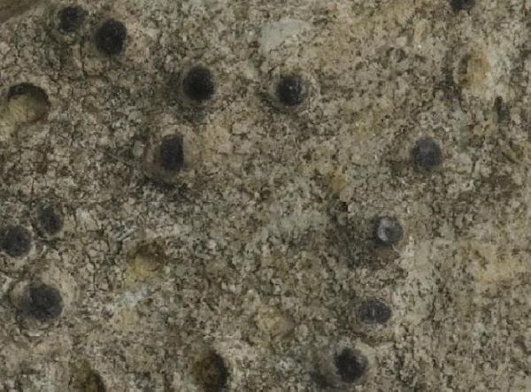 Description: Thallus crustose, thinly episubstratic, white to grey, rarely brownish or inapparent, continuous to somewhat cracked. Perithecia black, sometimes grey-pruinose, (0.35-)0.4-0.7(-1) mm across, strongly projecting from the rock, not covered by thallus. Involucrellum well-developed, covering the upper third of the perithecium; exciple dark in upper part, colourless or pale brown in lower part; hamathecium of periphyses and periphysoids, interascal filaments absent; hymenial gel I+ red (I+ blue at very low concentrations of I), K/I+ blue. Asci 8-spored, narrowly ellipsoid to clavate, I-, fissitunicate, the wall thickened above, with an ocular chamber, dehiscent by extrusion of a delicate rostrum. Ascospores 1-septate, hyaline, ellipsoid, (17-)21-32(-40) x (7.5-)10-14(-16.5) μm. Photobiont chlorococcoid. Spot tests: K-, C-, KC-, P-, UV-. Chemistry: without lichen substances.Note: a widespread lichen, with optimum on limestone and dolomite, but also found on calciferous sandstone; most common in the Alps, rarer, but perhaps more widespread, in the Apennines.