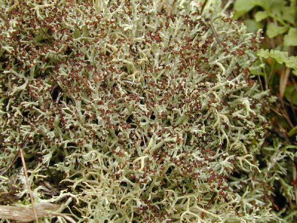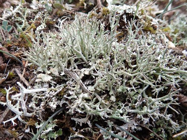 Description: Primary thallus squamulose, persistent in young specimens, then often evanescent, the squamules middle-sized, 2-4 mm long, 1-2 mm wide, ascending or often forming rosettes, grey green above, white beneath. Podetia shrubby, hollow inside, 2-6 cm tall, richly branched, forming dense tufts, greenish grey to whitish grey, with pointed apices (except in fertile specimens) and a corticate, sparsely to densely squamulose surface, without medullary outbursts at the base. Algal layer markedly discontinuous, the algae forming dispersed, raised, green areoles separated by conspicuous white lines. Apothecia rare, terminal, dark brown, convex, sometimes gathered in subcorymbose clusters. Asci 8-spored, clavate, thickened at apex, with a K/I+ blue tholus and a K/I+ strongly blue outer gelatinous sheath, Cladonia-type. Ascospores 1-celled, hyaline, ellipsoid. Pycnidia dark, semi-immersed on the tips of podetia, with a colourless jelly. Conidia hyaline, curved. Photobiont chlorococcoid. Spot tests and chemistry: three chemotypes (all of them C-, KC-, UV-): 1) K+ yellow, P– (atranorin, rangiformic and norrangiformic acids), 2) K+ yellow, P+ red (atranorin, rangiformic, norrangiformic acids and fumarprotocetraric acid complex), 3) K+ yellow, P+ yellow (atranorin, rangiformic and psoromic acids). Chemotype 3) is hitherto known only from Spain and the Balkan Peninsula.Note: a mainly temperate species found on calciferous to acidic soil in open habitats, with optimum in dry grasslands; one of the most frequent and abundant species of Cladonia in Italy.