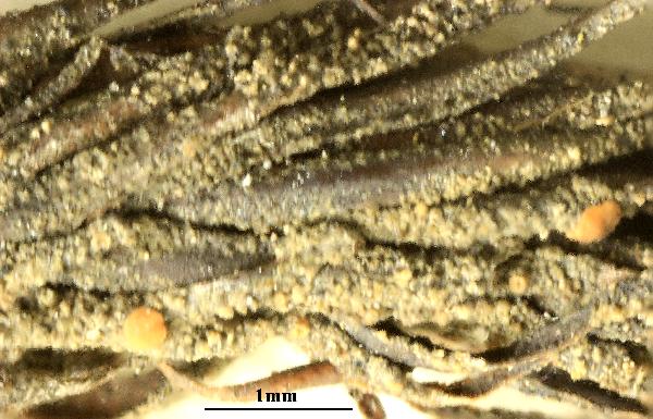 [VZR188], Polonia. Pomerania, reservatum naturae in silva "Kluki". Ad corticem Vacinii myrtilli. Leg. J. Miadlikowska, 18.5.1995. Ex A. Vezda: Lichenes Rariores Exsiccati Nr. 199.